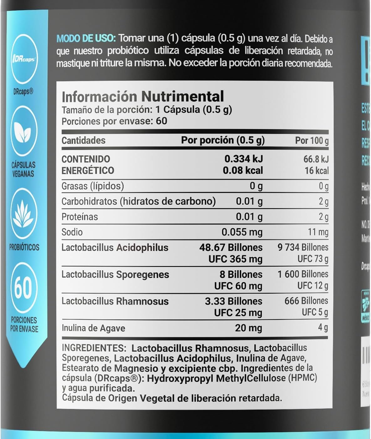 Adicionalmente, cada cápsula utiliza la innovadora tecnología DRcaps® para garantizar una absorción óptima, gracias a su liberación retardada, que ocurre 45 minutos después de la ingesta, en comparación con otras opciones que tienen liberación inmediata.