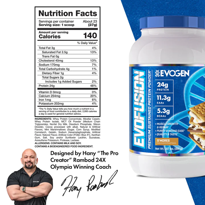 EVOGEN EVOFUSION 4.6 LBS es la elección definitiva para atletas y entusiastas del fitness que buscan optimizar su recuperación y crecimiento muscular. Esta fórmula avanzada combina proteínas de absorción rápida y lenta, asegurando un suministro constante de aminoácidos a tus músculos cuando más lo necesitan.